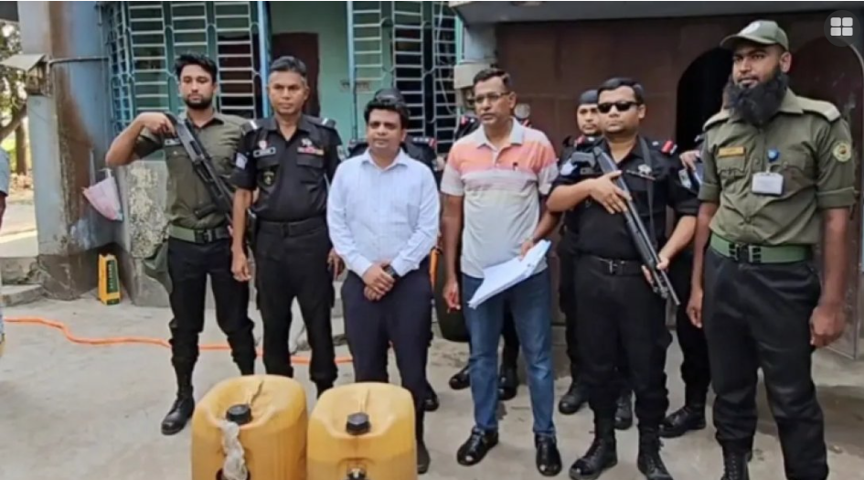 নাটোরের বড়াইগ্রামে একটি ভাড়া বাসার শৌচাগার থেকে অবৈধভাবে মজুত রাখা ১০৮ লিটার ডিজেল জব্দ করেছে র্যাব ও উপজেলা প্রশাসনের যৌথ