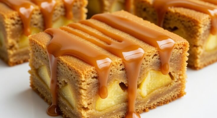 Pour the warm glaze evenly over the blondies. Use the back of a spoon or an offset spatula to spread it into a thin, even layer. Let the blondies cool completely on the wire rack. The glaze will firm up as it cools. Once fully cooled, slice into 20 bars using a sharp knife. Wipe the knife clean between cuts for neat edges.
