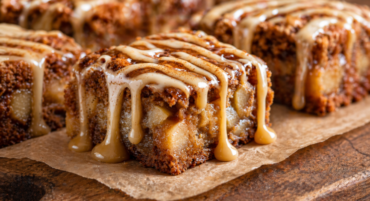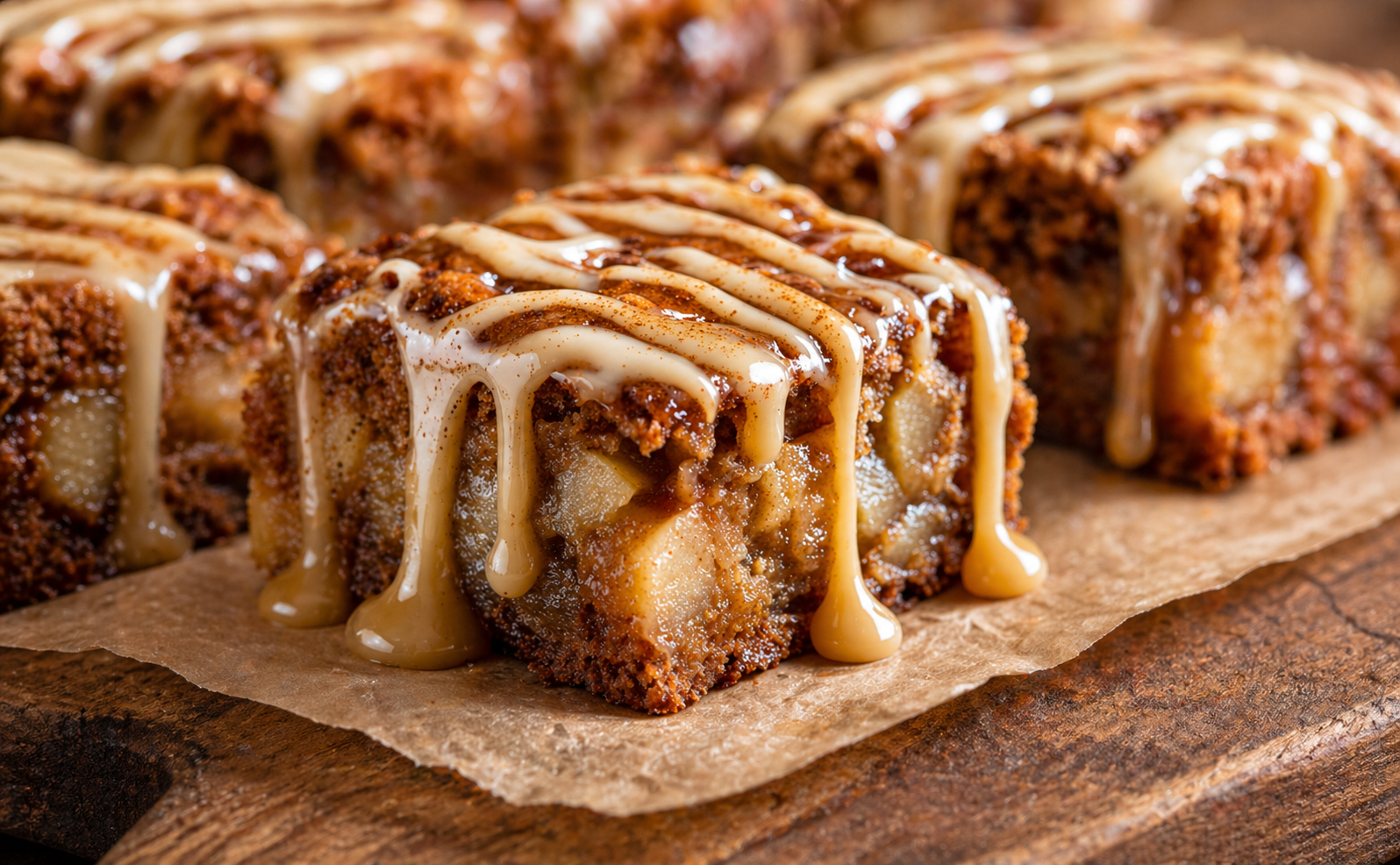 Soft, spiced apple-packed brownies topped with dreamy maple glaze – autumn in every bite!