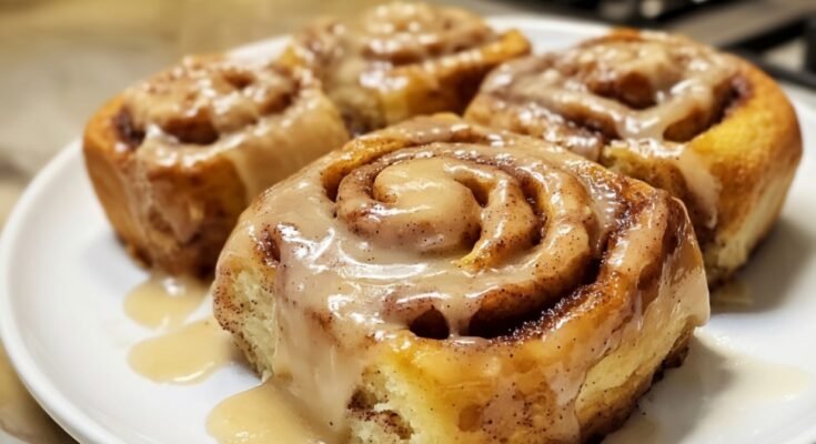 Allow the rolls to cool in the pan for 10 to 15 minutes. Spread the cinnamon cream cheese frosting evenly over the warm rolls. Serve immediately for the softest, gooiest texture.