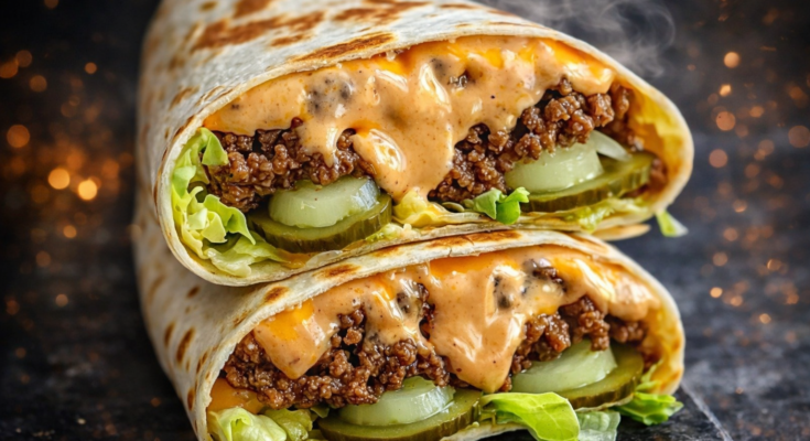 Big Mac wraps transform the iconic burger experience into convenient handheld packages that deliver all the familiar flavors without the messy eating challenges of traditional burgers. These clever wraps combine seasoned ground beef, crisp lettuce, melted cheese, and tangy pickles with that unmistakable special sauce, all rolled in soft flour tortillas for easy enjoyment. Perfect for busy weeknights when you crave fast food satisfaction but want homemade quality and complete control over ingredients and freshness.