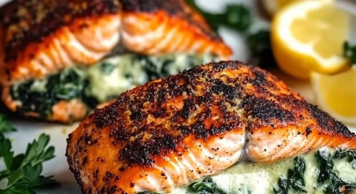 Rich, flavorful, and perfectly spiced—this blackened salmon stuffed with spinach and Parmesan is an elegant yet easy dish for any occasion.