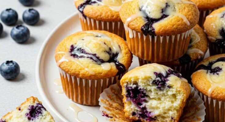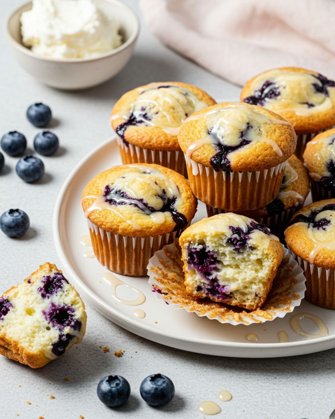- Add milk mixture to the bowl with dry ingredients then use a fork to combine. Do not over-mix. Fold in the blueberries.