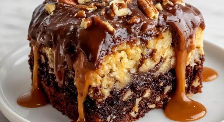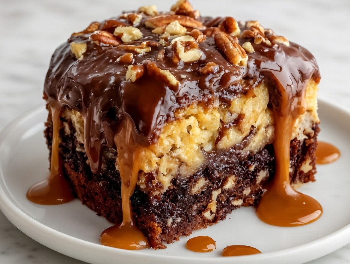 Box Mix Turtle Cake layers a moist chocolate cake with caramel, chocolate, pecans, and sweetened condensed milk for a rich, sliceable dessert that feeds a crowd with ease.