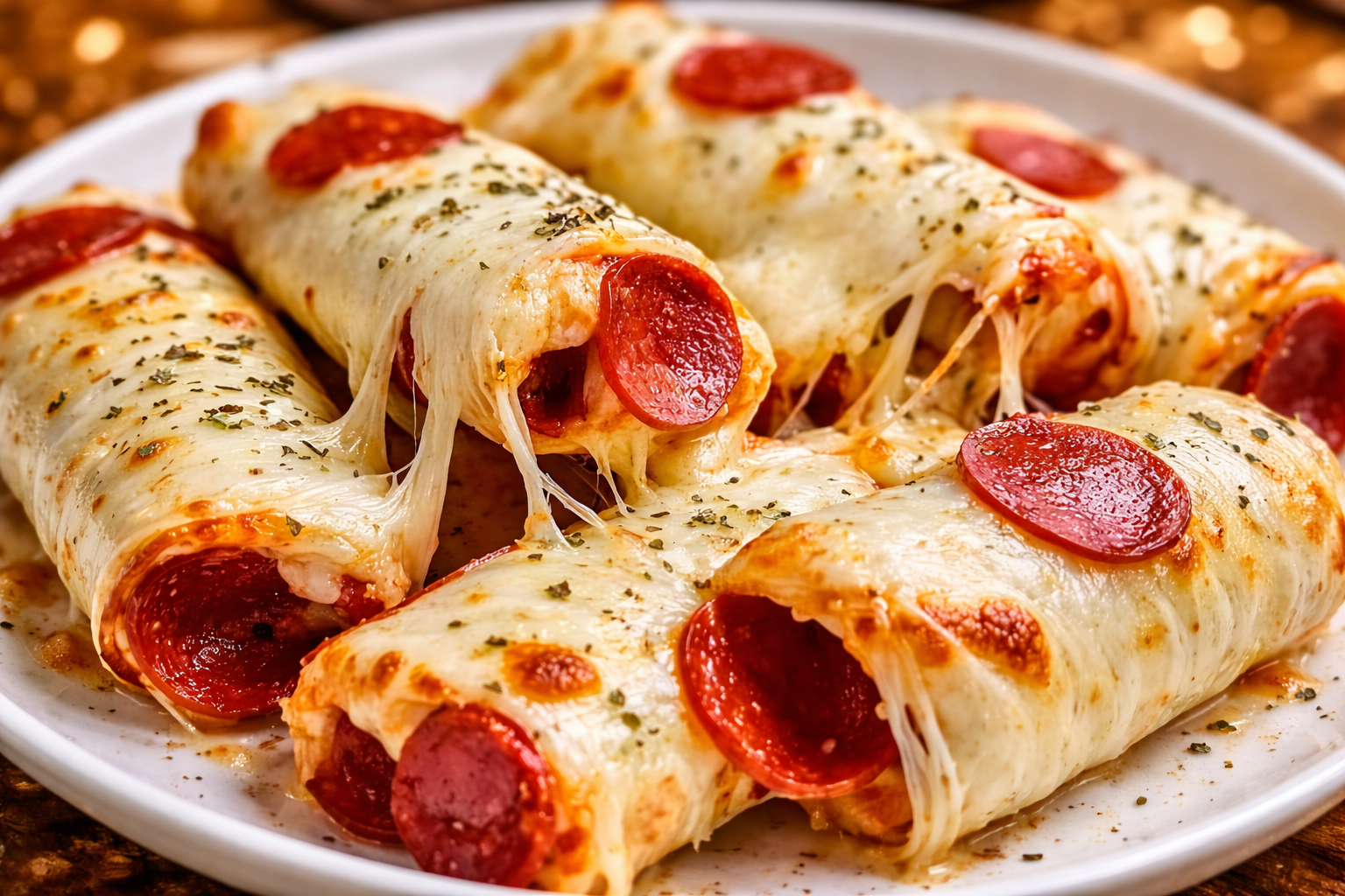 Crispy on the outside, cheesy and melty inside—these low-carb pepperoni pizza roll-ups are a quick, crowd-pleasing twist on classic pizza, perfect for weeknight snacks or party bites.
