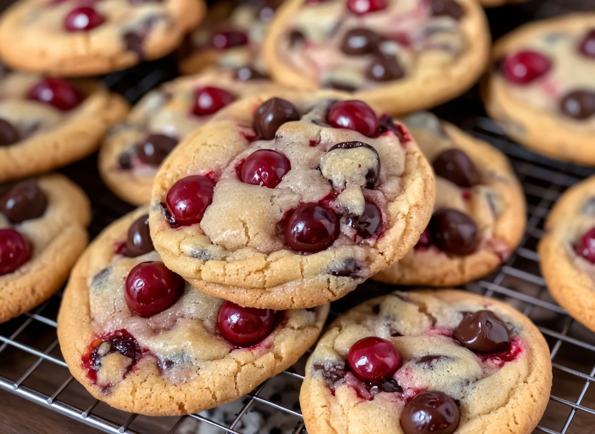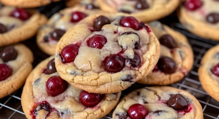 These cherry chocolate cookies bring together the unbeatable duo of every baker’s dreams sweet maraschino cherries and melty chocolate chips in a cookie that is part dessert nostalgia part bake sale showstopper. Their pretty pops of red make every batch feel extra festive and they always disappear fast at parties or afternoon coffee meetups.