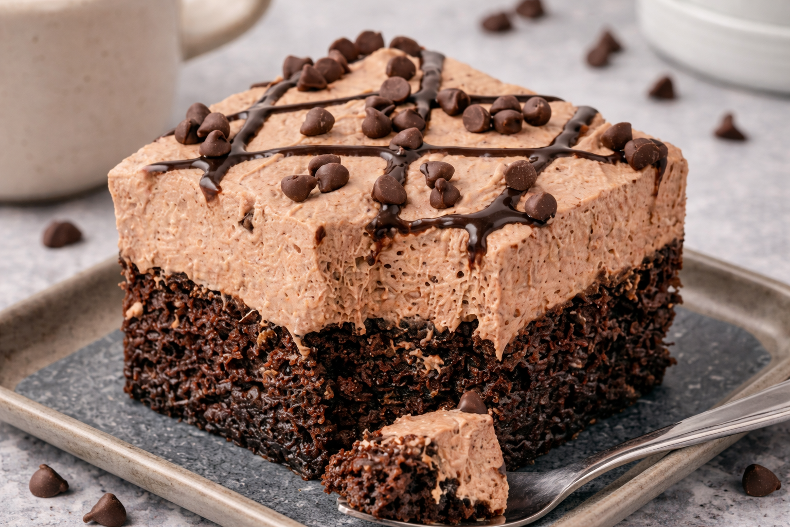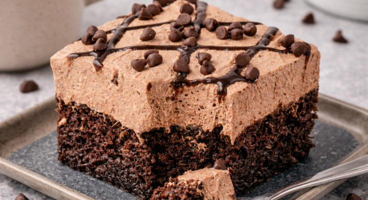 ● Poke holes while the cake is warm — it absorbs the chocolate better.