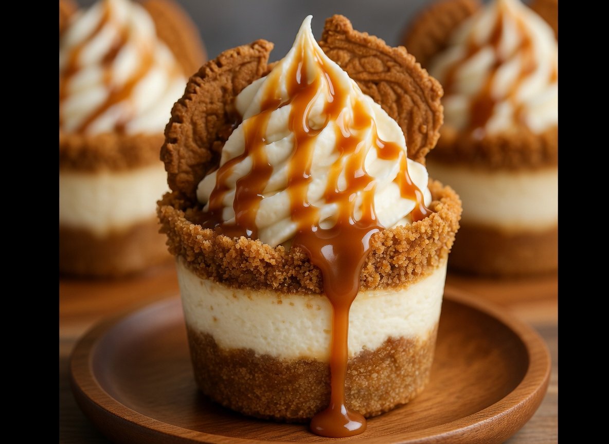 Creamy No-Bake Biscoff Cheesecake Cups with a Spiced Cookie Crust