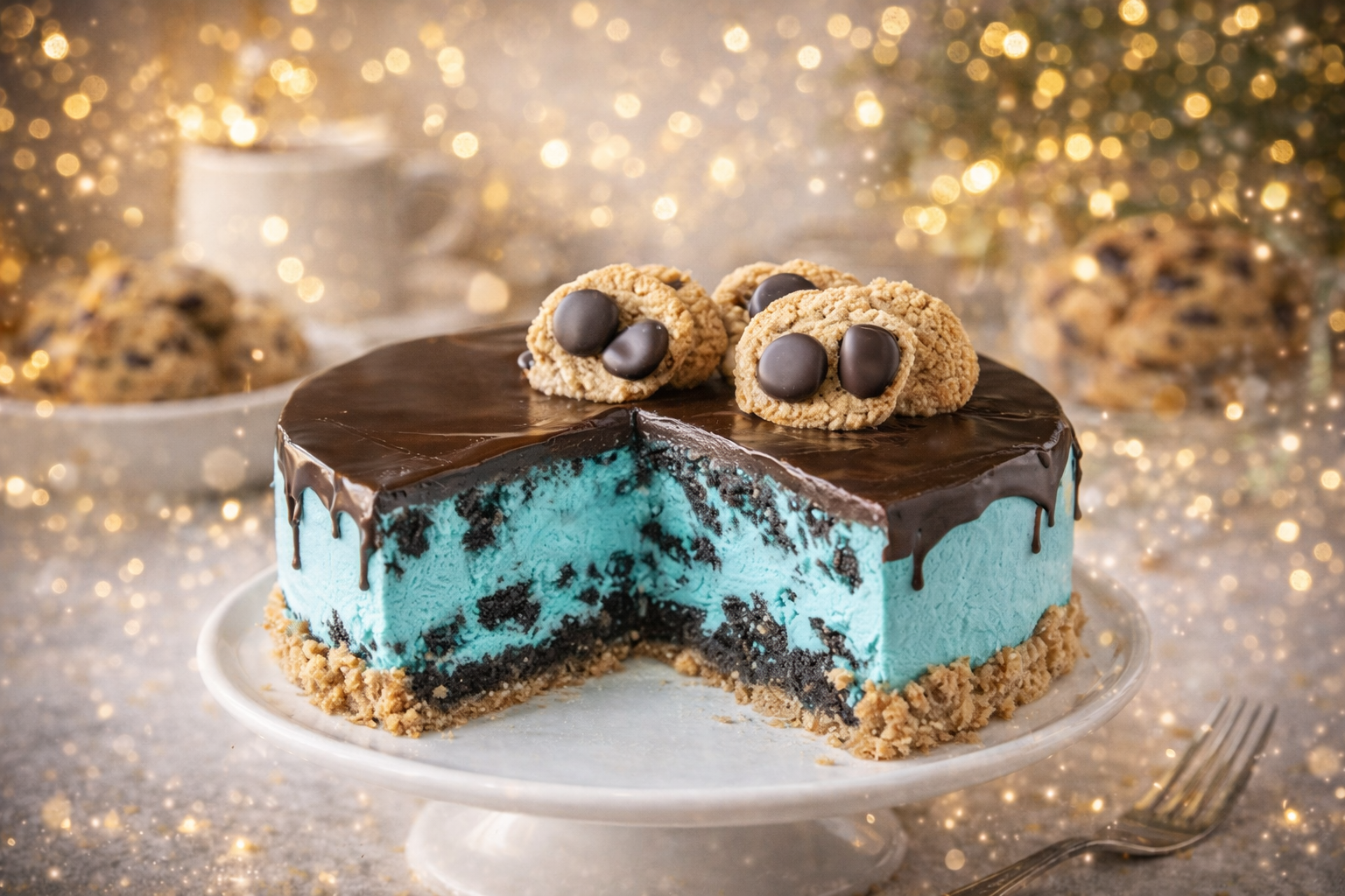 A decadent Cookie Monster Cheesecake that combines rich flavors and a playful presentation, perfect for any dessert lover.