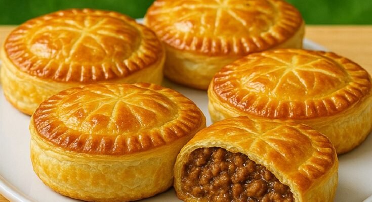 It’s the texture contrast: crisp golden shell meets savory, slow-simmered beef. The use of self-raising flour in the dough makes it puff slightly without needing yeast, which gives that buttery lift without long rise times.