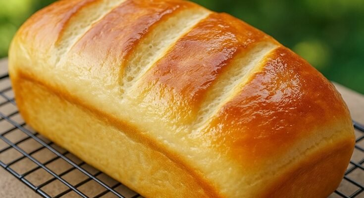 A soft and golden bread loaf made without yeast, ready in under 30 minutes