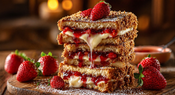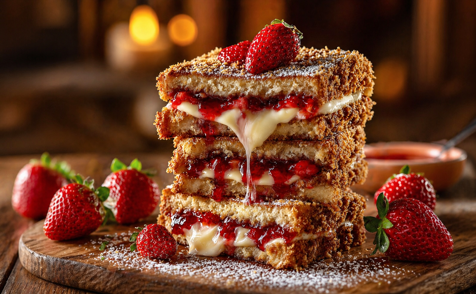 Crispy on the outside, creamy and fruity on the inside—this sweet sandwich is pure dessert magic!