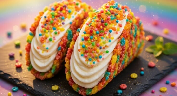 Fruity Pebbles Cheesecake Tacos