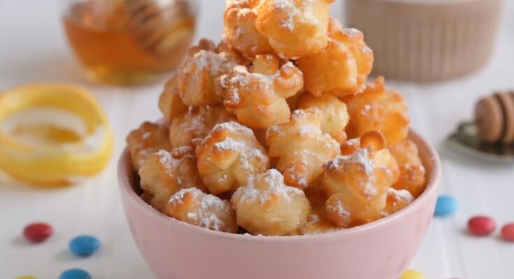 6: Drain & Dust: Remove with a slotted spoon, drain on paper towels, and dust generously with powdered sugar.