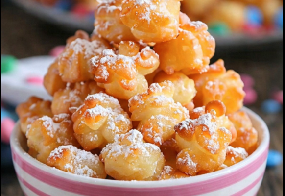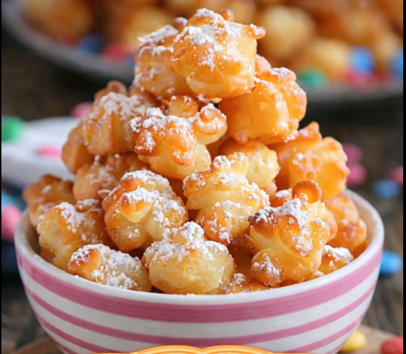 6: Drain & Dust: Remove with a slotted spoon, drain on paper towels, and dust generously with powdered sugar.