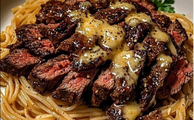 - Sprinkle with fresh herbs for a pop of color and freshness Serve immediately while the noodles are still glossy and the steak is warm