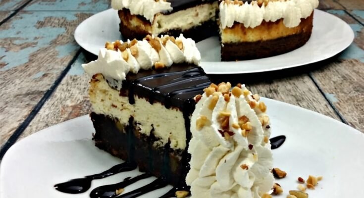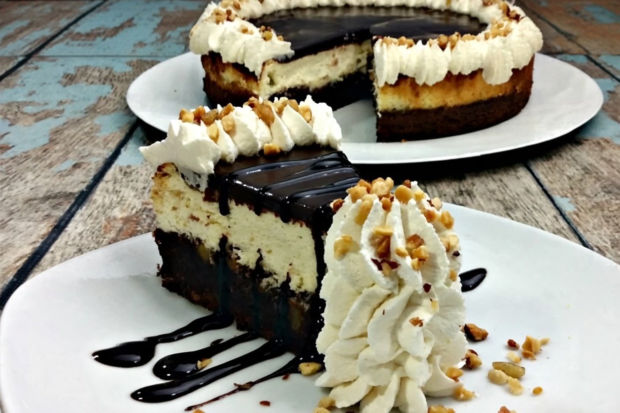 • Pour the cheesecake over the cooled brownies and bake again for about an hour. Let it cool in the fridge overnight before adding the toppings.