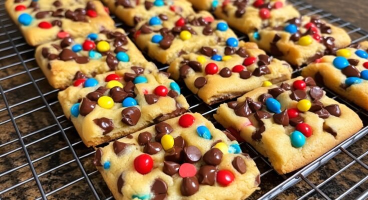 Cool and slice: Allow the bars to cool in the pan for 15–20 minutes. Using the parchment overhang, lift the slab onto a cutting board, or slice directly in the pan. Cut into squares or rectangles while still slightly warm for easier slicing