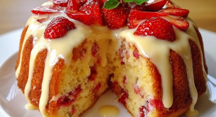 Lemon Cream Cheese Strawberry Pound Cake – Moist, Fruity & Creamy Delight