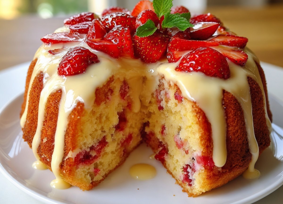 The cream cheese adds an extra layer of moisture and richness, while the lemon brings a refreshing citrus note that keeps the cake light and vibrant. Fresh strawberries add natural sweetness and a juicy texture, making this pound cake both elegant and comforting.