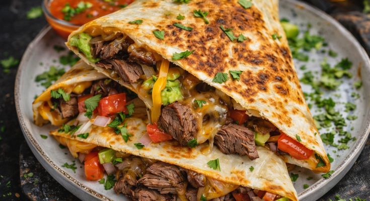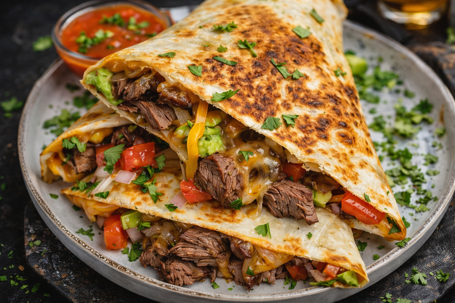 Sides: Pair your loaded steak quesadillas with a refreshing side salad or roasted vegetables for a well-rounded meal.