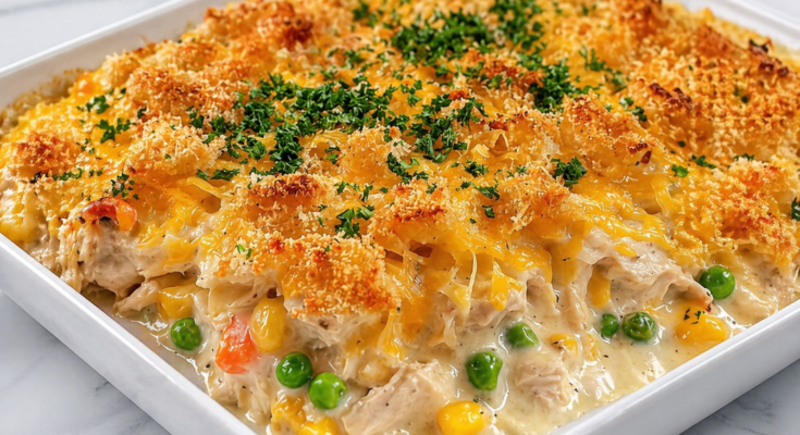 Welcome to the comforting world of Million Dollar Chicken Casserole! This dish is a true crowd-pleaser, combining tender shredded chicken with a creamy, cheesy filling that’s simply irresistible. Topped with buttery Ritz crackers, it creates a golden, crunchy crust that complements the rich flavors beneath. Perfect for cozy family dinners or potluck gatherings, this casserole is sure to impress everyone at your table!