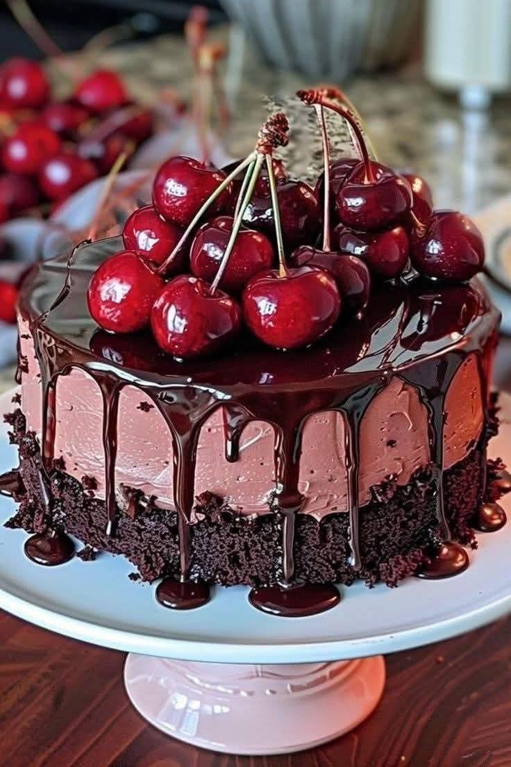 Chocolate cake → chocolate mousse → strawberry cake → vanilla cream → vanilla cake