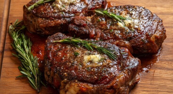 Remove the ribeye steaks from the refrigerator 30 minutes before cooking to bring them to room temperature.