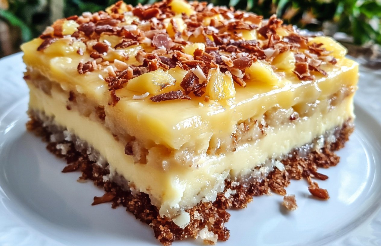 Indulge in a luscious tropical dessert with this Pineapple Coconut Cream Cake a dreamy, no-bake treat that perfectly balances sweetness and freshness. Featuring a buttery graham cracker crust, a rich and velvety cream cheese filling, and bursts of juicy pineapple, this cake is elevated with the irresistible flavor of coconut in every bite.