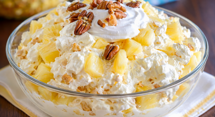 One afternoon, with half a can of crushed pineapple staring at me from the fridge and a craving for something nostalgic and creamy, I started mixing ingredients on instinct. What came together wasn’t just a dish—it felt like summer in a spoonful. No baking. No fuss. Just a bowl of soft, fluffy joy.