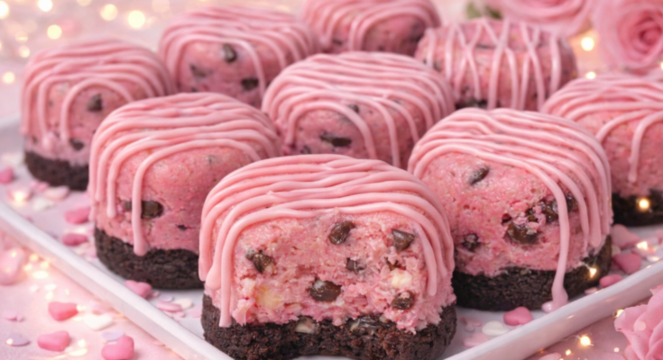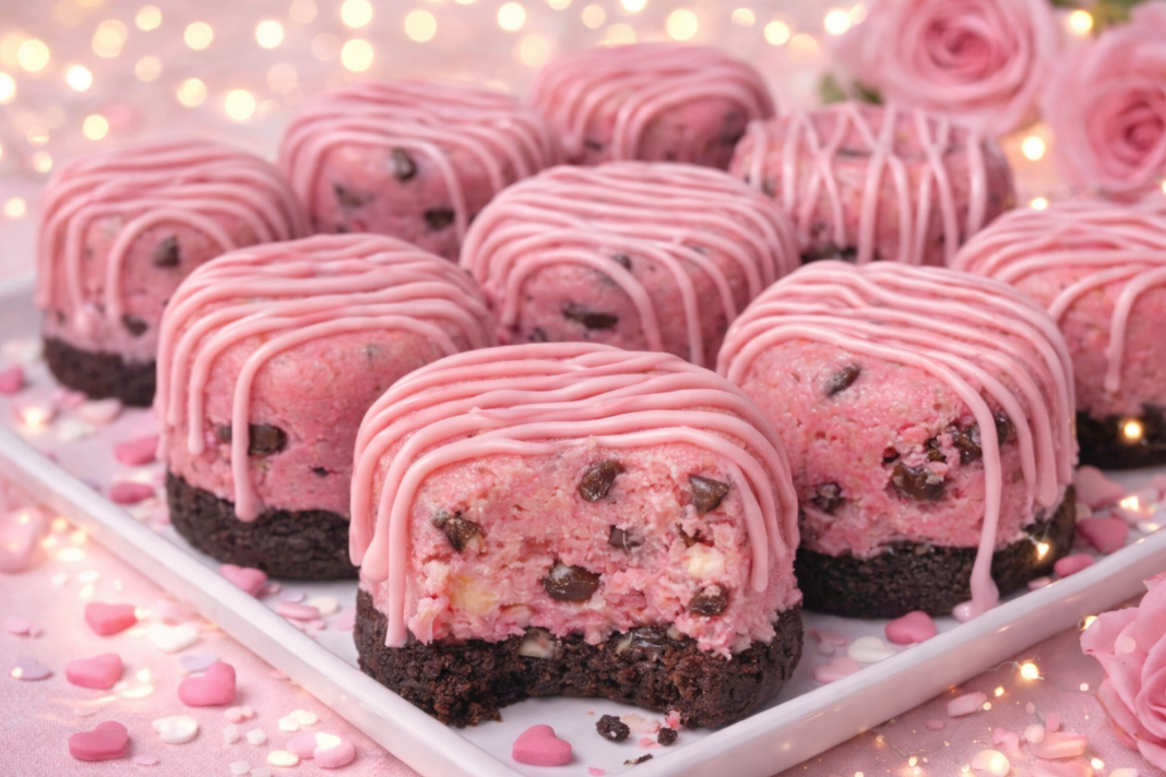 3: Assemble the layers – Press a thick scoop of cookie dough firmly onto each cooled brownie, smoothing the top flat.