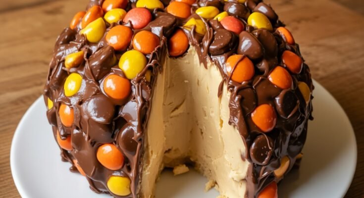 Add the 1 cup of mini Reese’s Pieces, ½ cup of mini chocolate chips, and the optional ½ cup of crushed peanut butter cups. Fold them in gently with a spatula until they are evenly distributed throughout the peanut butter mixture.