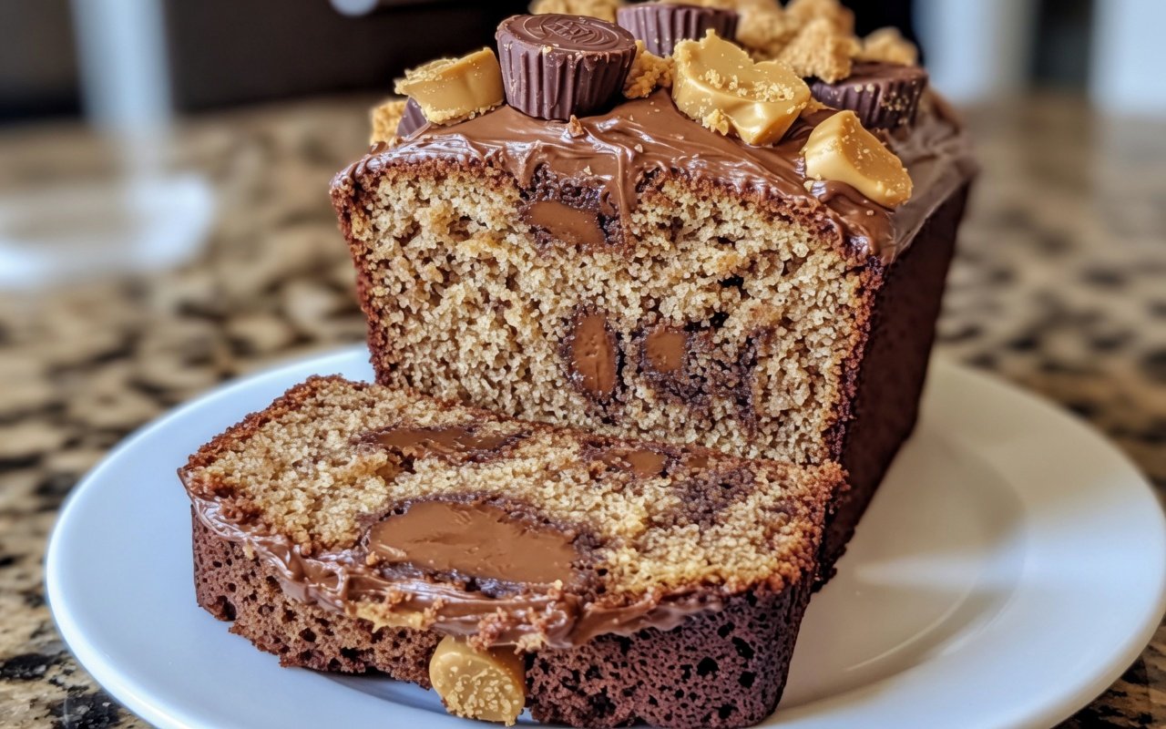 Indulge in the ultimate comfort food with this Reese’s Peanut Butter Cup Banana Bread, where creamy peanut butter meets ripe bananas and chunks of chocolatey Reese’s, creating a moist and delectable loaf that’s perfect for any occasion.