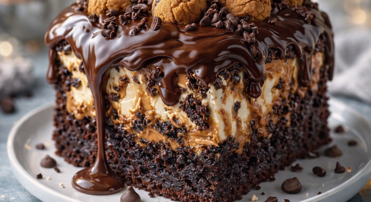 If you have ever struggled to choose between a fudgy brownie and a warm chocolate chip cookie, the Cookie Dough Brownie Cake solves that delicious dilemma in the most indulgent way possible. This dessert combines a dense, rich brownie base with a thick layer of edible cookie dough and a silky chocolate topping, creating a bakery-style masterpiece that looks impressive yet is surprisingly achievable at home.
