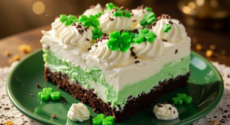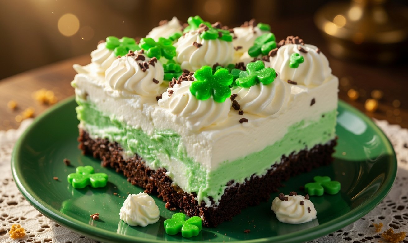 5. Spread the mint pudding evenly over the cookies-and-cream layer.