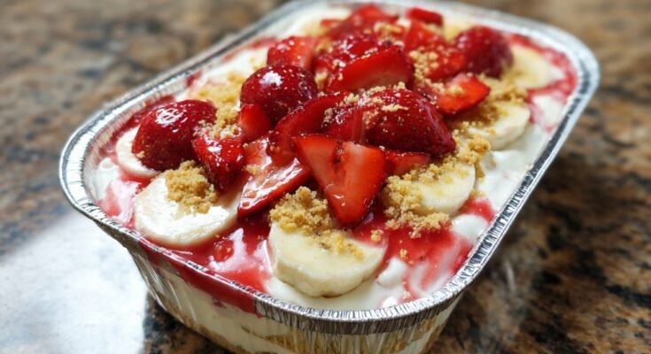 With its fluffy cheesecake filling and luscious vanilla pudding, each spoonful offers a melt-in-your-mouth experience. The vibrant strawberries and bananas add a burst of freshness that perfectly complements the creamy layers. Get ready to dive into this scrumptious dessert that’s as beautiful as it is delicious!