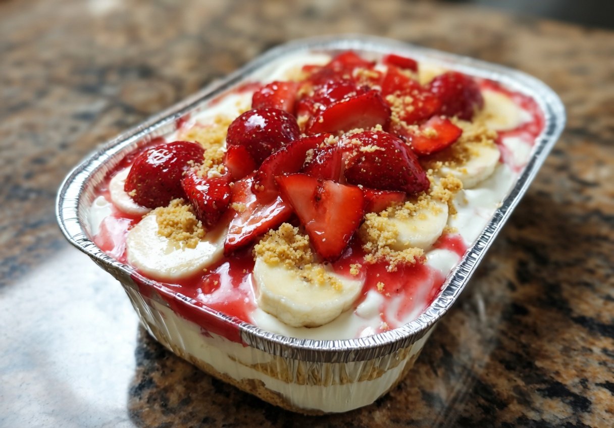 A rich, no-bake layered dessert featuring fluffy cheesecake filling, creamy vanilla pudding, fresh bananas, strawberries, and vanilla wafers. Perfect for gatherings and make-ahead occasions.
