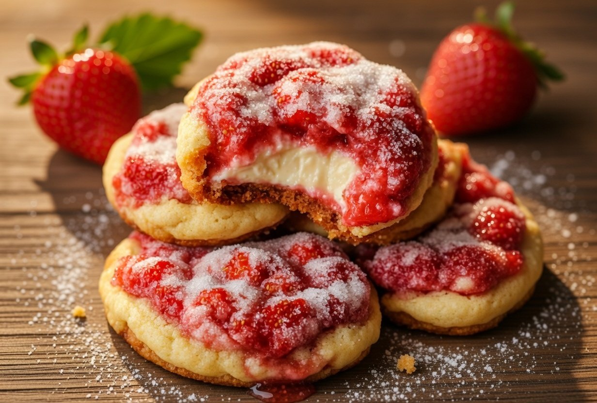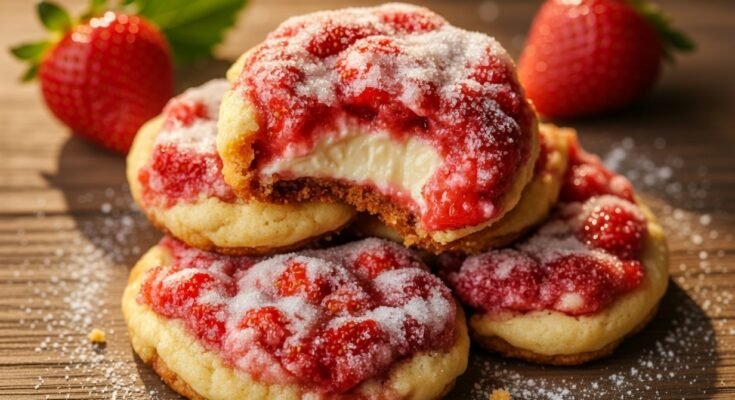 Soft strawberry cookies with sweet-tangy cheesecake centers, easy to make, great for any celebration or cozy treat.