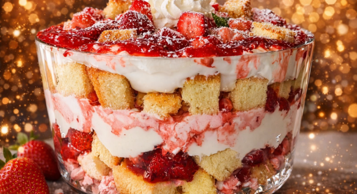 9. Repeat the layers until the dish is filled, finishing with a layer of strawberries on top.