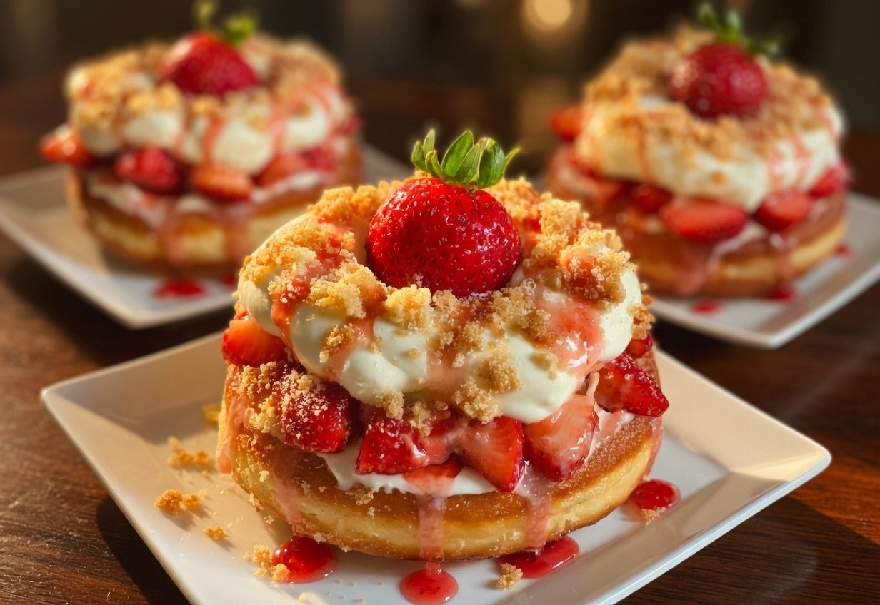 Strawberry Shortcake Cheesecake Donuts 🍩