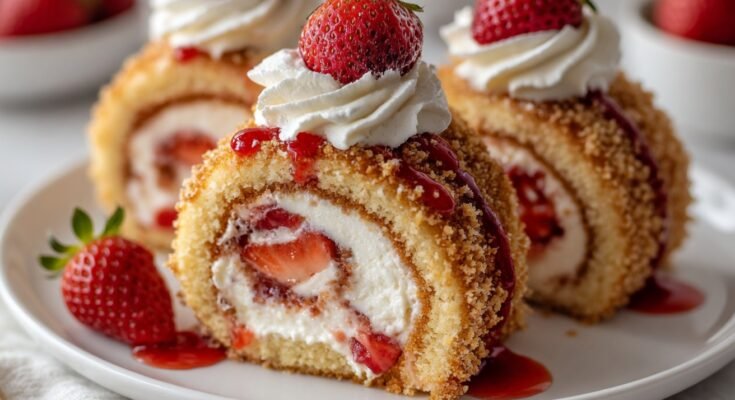 Soft, creamy, and bursting with fresh strawberries—these dreamy rolls are the ultimate sweet treat 😍🍓