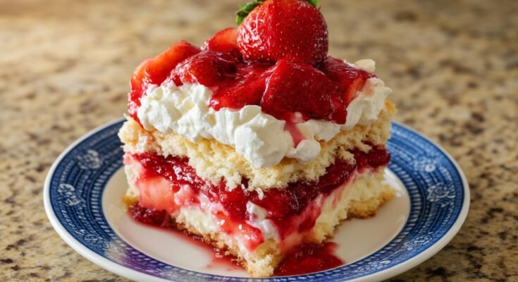 With its combination of vanilla cake, strawberry filling, cheesecake swirl, and crumbly topping, every bite is warm, gooey, creamy, and bursting with fresh strawberry flavor. This recipe article explains everything you need—ingredients, instructions, tips, variations, and more—so you can make the ultimate Strawberry Shortcake Earthquake Cake at home.