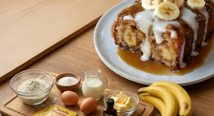 Mix in the mashed bananas and dry vanilla pudding mix until fully combined. The batter will become thick and creamy.