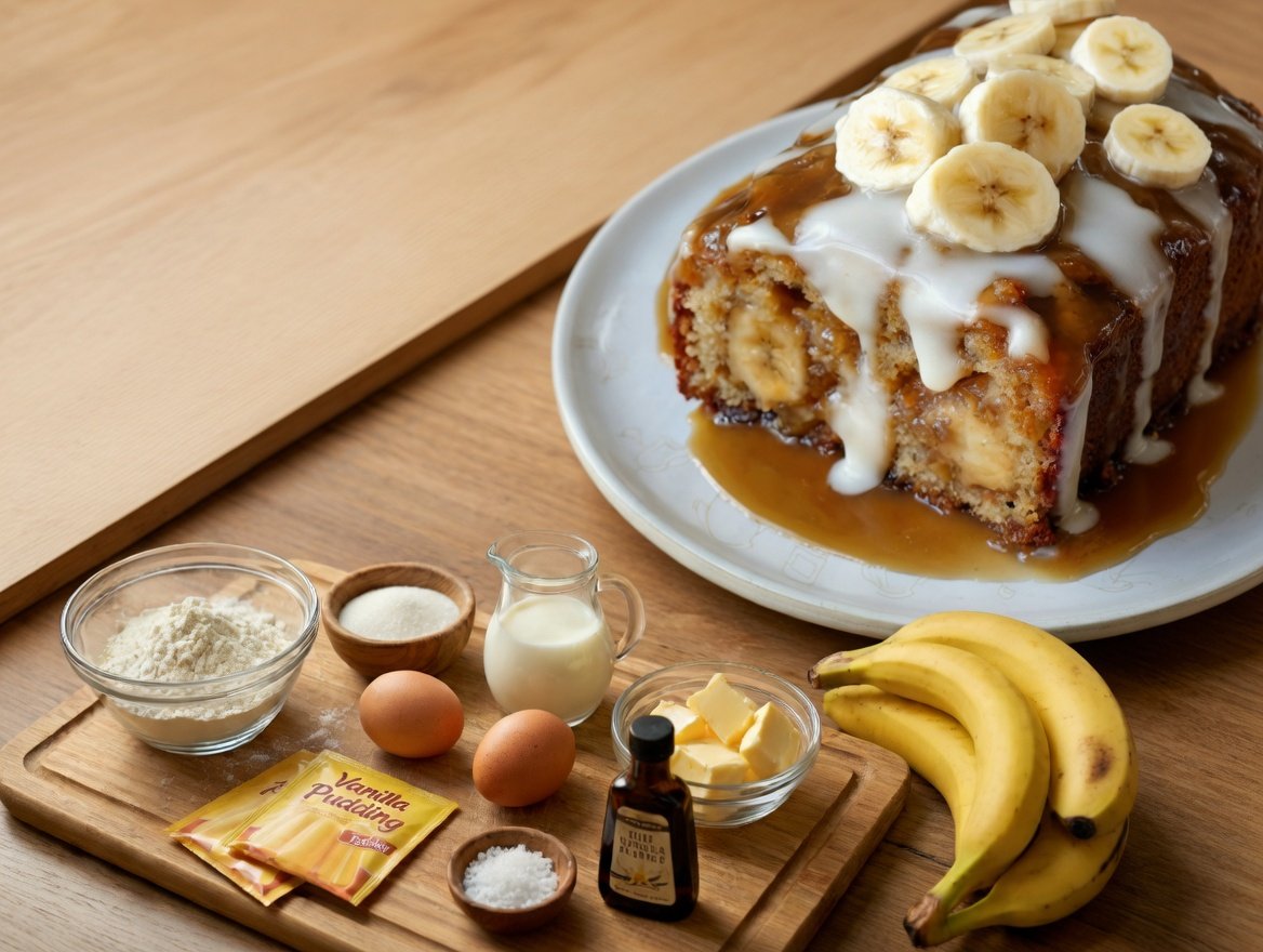 Mix in the mashed bananas and dry vanilla pudding mix until fully combined. The batter will become thick and creamy.